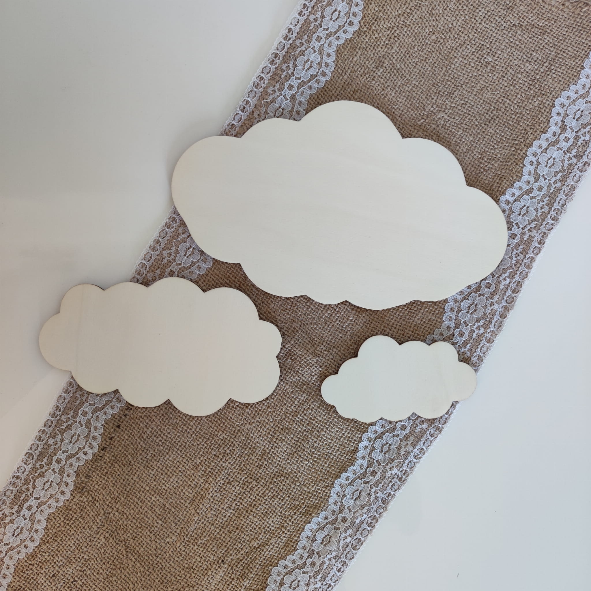 Drewniane dekoracje na ścianę - zestaw chmurek 3 sztuki